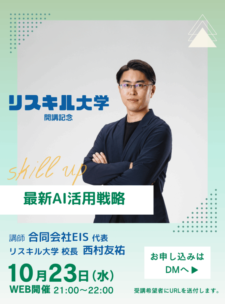 ただし、各講師が個人として提供するサービスや商品を購入される場合は、受講者ご自身の判断と責任に基づくものとなり、リスキル大学の提供するプログラム外での契約となります。そのため、当該契約に関してリスキル大学は一切の責任を負いかねますので、あらかじめご了承ください。